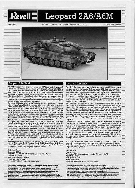 Fazit: Trotz der kleinen Probleme mit der Wanne und der Spachtelei durch den etwas komplizierten Aufbau dieser und der Senkstellen auf den Teilen ist Revell ein gutes Modell der Raubkatze gelungen. Für Freunde moderner Kampfpanzer sehr zu empfehlen. Der Preis von knapp 30 Euro ist gerechtfertigt und in Gegensatz zum Tamiya Modell der fast das doppelte kostet eine gute Alternative.