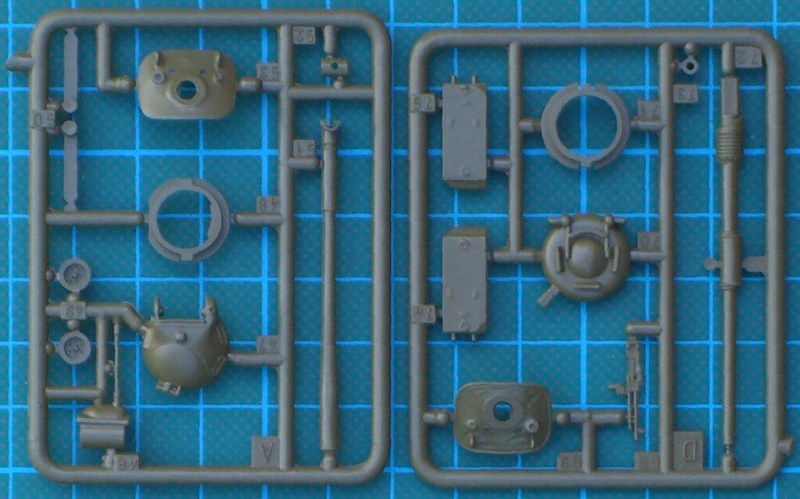 Der Bausatz besteht aus fünf Spritzlingen und der Ober- sowie Unterwanne, dazu gibt es ein Klarsichtteil und natürlich Decals. Im Revell-Bausatz sind alle Teile enthalten, die den Bau der o.g. Versionen ermöglichen.