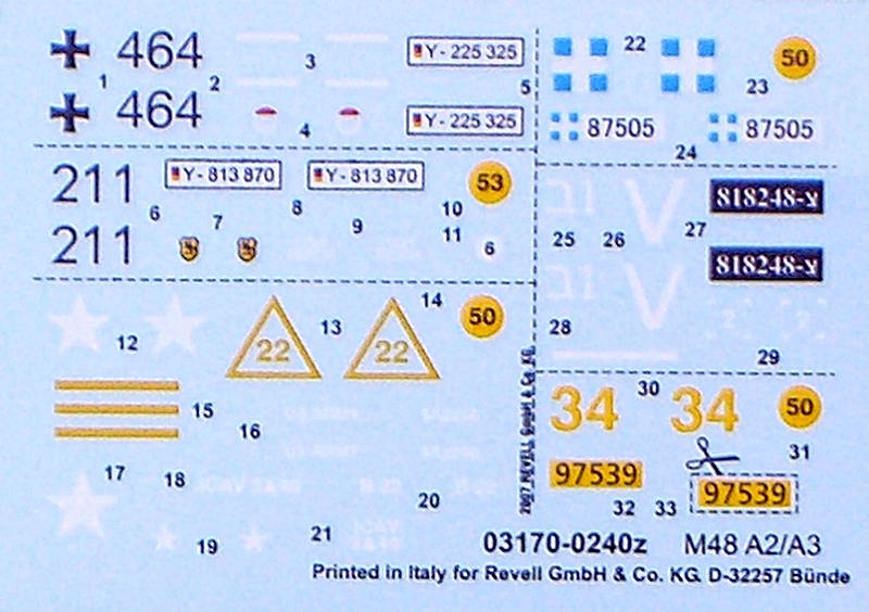 Die Decals wurden auf hellblauem Trägerpapier versatzfrei gedruckt und enthalten z. T. sehr feine Schriftzüge.