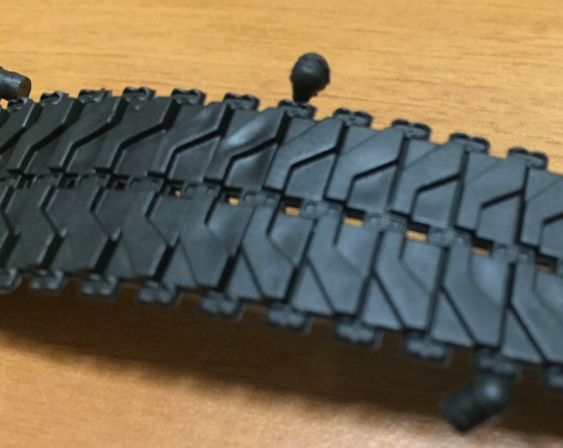 Die Vinylketten haben auf der Innenseite Sinkmarken. Dort sind sie zumeist unsichtbar. Auf der Außenseite konnte kein Fehler erkannt werden. Die Vinylketten stellen die US-Ketten und nicht die der Bundeswehr dar. Dies ist die Auskunft von mit dem Original vertrauten Personen. Eine Bestätigung aus schriftlicher Quelle konnte ich nicht ermitteln.