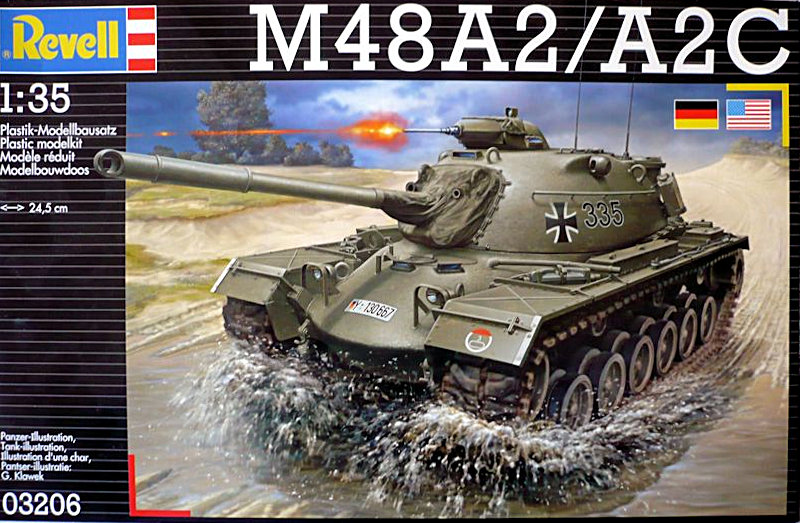 Vorbild: Der M48 Patton war der erste grundlegend neu entwickelte Kampfpanzer der USA nach dem zweiten Weltkrieg. Er gehörte zur Anfangsausstattung der jungen Bundeswehr und bildete sogar in den kampfwertgesteigerten Versionen A2 und A2C bis weit in die 1970er Jahre das Rückgrat der Panzertruppe. Die Version A2 wurde ab 1956 gebaut, bei der modifizierten Version A2C entfiel einzig das Kettenspannrad. Zunächst wurden die M48A2/A2C von der Bundeswehr im Originalzustand genutzt, erst später kamen bundeswehrspezifische Änderungen hinzu. Der M48A2/A2C verfügte über einen optischen Entfernungsmesser, welcher vom Kommandanten bedient wird. Zudem war es auch Kommandantenaufgabe, das 12,7 mm MG in der Kommandantenkuppel einzusetzen.