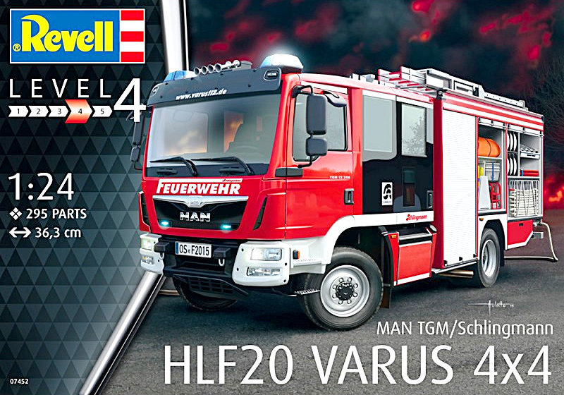 Zu den Neuheiten des Jahres 2016 zählt auch diese Feuerwehr von Revell. Der Karton ist ansprechend farbig gestaltet, aber leider sehr dünn und wabbelig. Viele Modellbauer kaufen sich die Bausätze, um Sie später zu bauen. Fast immer stapelt man seine Bausätze. Solche Kartons können sehr schnell eingedrückt werden, alle anderen Firmen haben dies schon lange erkannt.