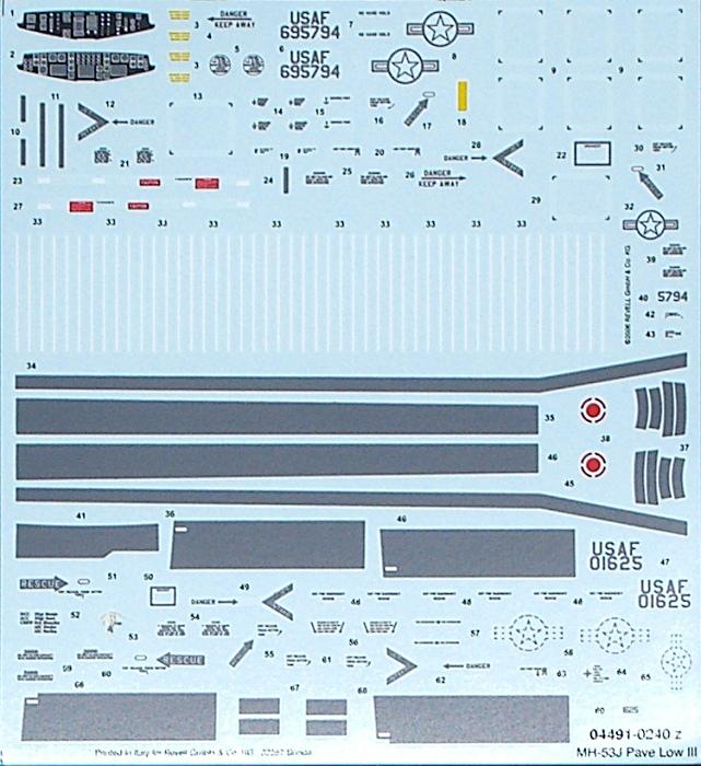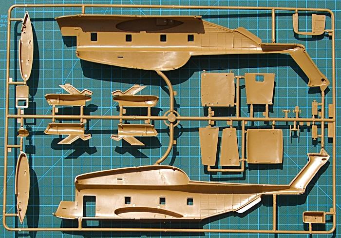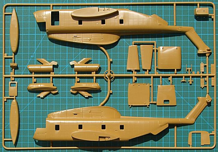 Bausatz: Hierbei handelt es sich um eine Bausatzmodifikation der H-53-Reihe von Revell/Italeri. Der Bausatz hat feine und z.T. erhabene Strukturen. Die Glasteile sind separat verpackt und recht klar. Für das Cockpit gibt es eine solide Ausstattung und das Instrumentenbrett gibt es als Decal in zwei Version (je nach Bemalungsvariante).