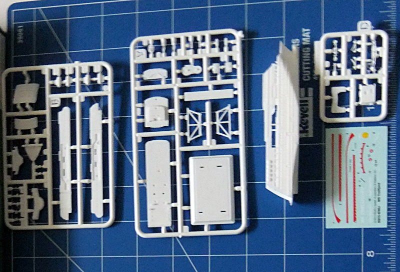 Dieses Modell wurde mit viel Liebe zum Detail hergestellt. Neben dem Rumpf aus einem Stück, finden sich rund 40 sehr filigrane Teile, um aus den „Winzlingen“ feine Schaustücke zu gestalten. Die Unterschiede zwischen den beiden Schiffen Schiffe ist für den Bastler auf den kleinen Gussrahmen ersichtlich. Jeweils ein kleines Decalblatt runden die Bausätze ab. Nur die Ständer erscheint mir etwas zu voluminös. Die Bauanleitung ist Revell-Standard.