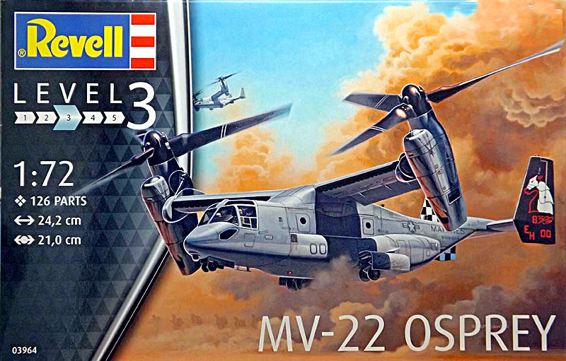 Inwiefern nun der Bausatz, den Revell noch zum Jahresende 2015 in die Händlerregale brachte, dem neuesten Muster der Osprey entspricht, ist nicht so einfach festzustellen. Auf alle Fälle sind die 124 Teile des Modells nicht schlecht detailliert und die wichtigsten elektronischen Teile, wie das FLIR-Gerät, sowie weitere Ausrüstungen, die für ein adäquates Modell notwendig sind, sind vorhanden.