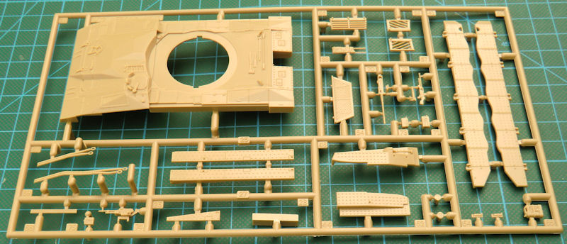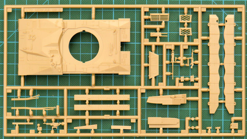 Bausatz: Vor zehn Jahren brachte Revell den Merkava Mk. III mit gleicher Bausatznummer heraus. Der Kit ist nach wie vor auf der Höhe der Zeit. In der typischen Revell-Schüttbox befinden sich vier Spritzlinge mit 150 Teilen.