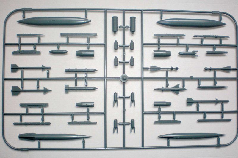 Besonders das Cockpit- und der Fahrwerksbereich sind hochdetailliert. Gleiches gilt für die Außenlasten. Die Wahl bei der Bestückung fällt schwer, da der Bausatz alle möglichen Zusatzbehälter enthält und bei der Bewaffnung kaum eine Option auslässt. Drei Seiten der Bauanleitung helfen bei der Gestaltung in diesem Bereich.