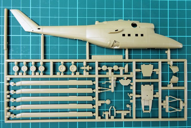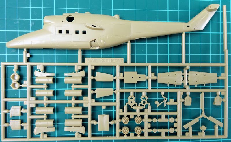 Vorbild: Die Mil Mi-24 hatte ihren Erstflug im Jahre 1969. Es war der erste sowjetische Kampfhubschrauber. Dieser kann gleichzeitig eine Gruppe Soldaten transportieren. Als erste Version wurde die Mi-24A mit großer Glaskanzel produziert. Die weiterentwickelte Mi-24D mit getrennten Besatzungskabinen hatte 1972 ihren Erstflug. Sein Kennzeichen war die mehrläufige Revolverkanone unterm Bug. Während der Kampfeinsätze in Afghanistan zeigte sich, dass die Mi-24D und die Weiterentwicklung V(W) sehr robust waren.