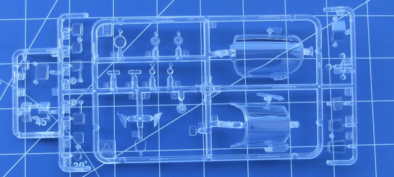 Alle Teile sind meiner Ansicht nach hervorragend gefertigt. Das trifft auf die inneren Werte des Fliegers genauso zu, wie auf die schön ausgeprägten Gravuren. Ich habe Klagen über ein unterdetailliertes Cockpit gelesen. Diesen kann ich nicht folgen. Der Sitz geht in Ordnung, sollte aber mit dem notwendigen Gurtzeug ausgestattet werden. Die Details des Cockpits insgesamt, mit den geprägten Instrumenten und dem hinteren Teil, an dem selbst die Zuleitungskabel zu sehen sind, sind für diesen Maßstab vorbildlich. Für das Instrumentenbrett liegen Instrumente als Abziehbild bei. Wenn die Kabine geöffnet dargestellt wird, kann das Modell noch mit einer Einstiegsleiter für den Piloten versehen werden. Die Klarsichteile verdienen ihre Bezeichnung.