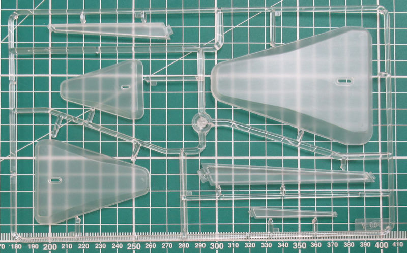 In der Tüte befindet sich ein klarer Spritzling mit sechs Teilen. Diese sind leicht mattiert abgespritzt. Daraus lassen sich drei Ständer bauen. Auf der Tütenrückseite gibt es eine kleine Bauanleitung. Gedacht ist diese Set für Modelle der Maßstäbe 1/48 bis 1/144.