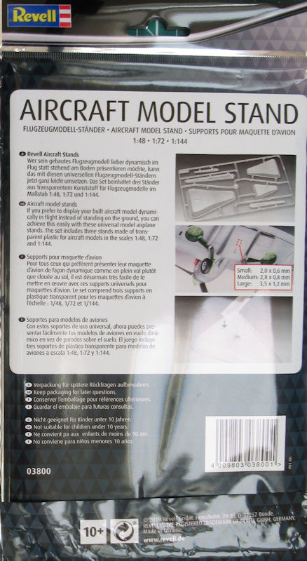 Fazit: Revell liefert hier mit den Ständern eine Möglichkeit die gebauten Flugzeugmodelle auch dynamisch mit eingezogenen Fahrwerk zu präsentieren. Für diese Modellbauer ist das Set sehr zu empfehlen.