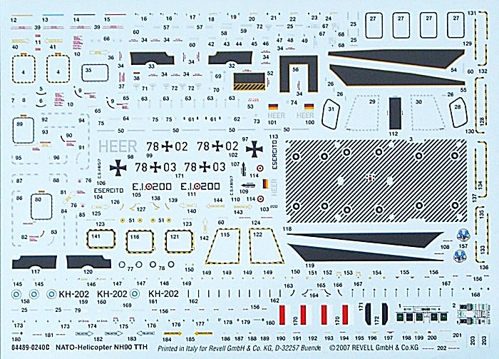 Das Cockpit ist recht ordentlich und die strukturierten Instrumententräger können mittels Decals aufgewertet werden. Die Gurte sind auf den Sitzen vorhanden. Für die Kabine gibt es eine schöne Inneneinrichtung. Dabei werden die nichtstrukturierten Seitenwände fast verdeckt. Die großen Seitentüren können damit ganz oder teilweise offen montiert werden. Revell weißt bei der Rumpfmontage nicht auf ein Buggewicht hin. Ich empfehle zur Sicherheit eines einzuplanen und einzubauen. In den 51 (!) Bauabschnitten zeigt die Bauanleitung wie die filigranen Teile richtig montiert werden. Dabei bleiben keine Fragen offen. Einzig die Farbangaben sind wieder typisch Revell. Es soll wieder gemixt werden statt das zur Hilfestellung auf RAL oder andere Standards verwiesen wird.