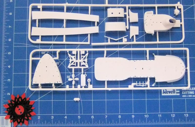 Die 61 Bauteile sind im bekannten unpraktischen Faltkarton gelagert. Über die Qualität der Bauteile kann man geteilter Meinung sein. Fest steht, alles was gebraucht wird um diesem historischen Fischereischiff das korrekte Äußere zu geben, ist vorhanden und das fast gratfrei.