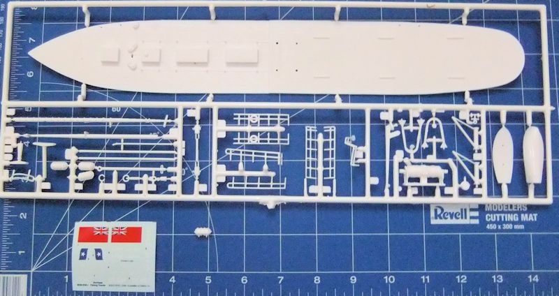Natürlich müssen, aufgrund des Alters dieser Bausatzform, bei der Detaillierung Abstriche gemacht werden. So gibt es keine Klarsichtteile für die großen Fenster an der Front der Kommandobrücke und die Verstärkungen an den Innenseiten der Bordwände sind nicht so ausgeprägt, wie es eigentlich für diesen Maßstab notwendig wäre. Insgesamt dürfte das fertige Modell doch sehr beeindrucked sein. Insbesondere mit einer aufwändigen farblichen Gestaltung. Den beiden Figuren sollte man aber einen Ruheplatz im Seemannsheim gönnen.