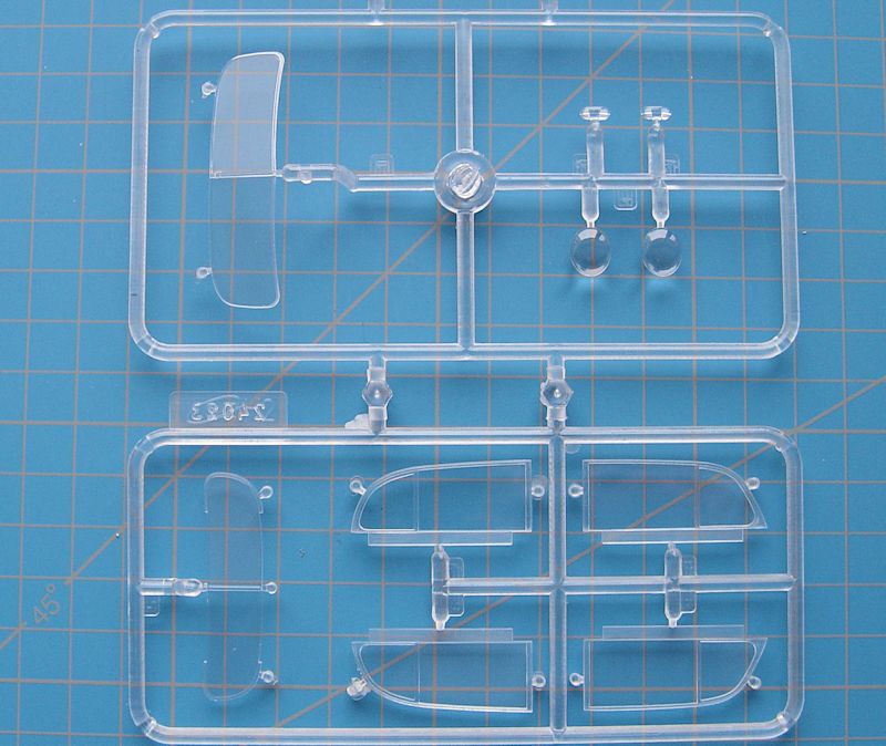 Ein kleiner Klarsichtrahmen mit 10 Teilen für die Scheiben und Scheinwerfer des Fahrzeugs.