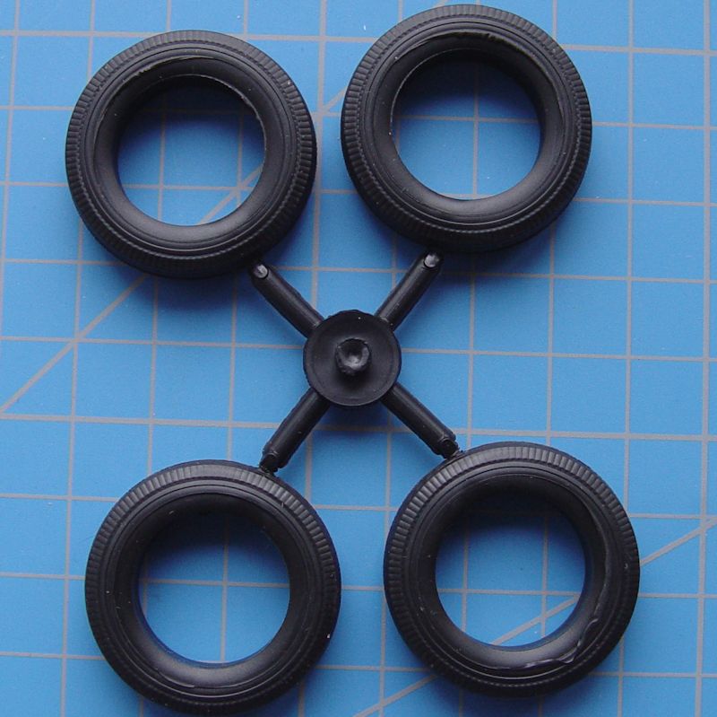 Das Profil der vier Vinylreifen ist gut gelungen. Sie sind aber meiner Meinung nach die Schwachstelle dieses Bausatzes, die bessere Lösung wären die Reifen aus Segment-Scheiben aus Kunststoff.