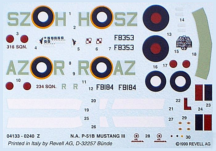 Vorbild: Hier möchte ich nur wenige Zeilen verlieren. Nach dem Einbau des Merlin-Motors in die hervorragende N.A. P-51 Zelle entwickelte sich die Mustang zu dem Begleitjäger der USAAF. Im September 1943 trafen die ersten P-51B in Großbritannien ein und wurden bis Kriegsende eingesetzt. Von der P-51B/C wurden 3738 Exemplare hergestellt. Die P-51B entstand bei North American in Kalifornien und die P-51C in Dallas (Texas). Bei der RAF eingesetzte Mustang III erhielten eine Schiebehaube, die die komplizierte Klapphaube ersetzte. Diese wurde "Malcom Hood" genannt. Bis zum Ende des WK II blieben die Mustang III bei der RAF im Einsatz.