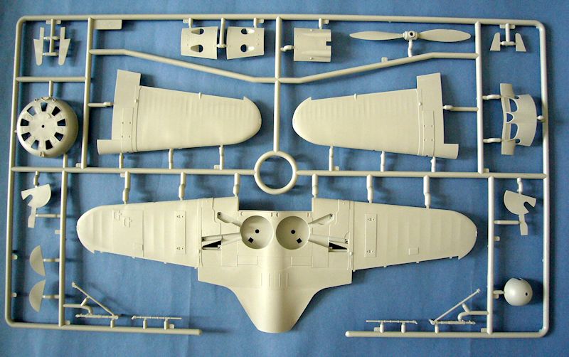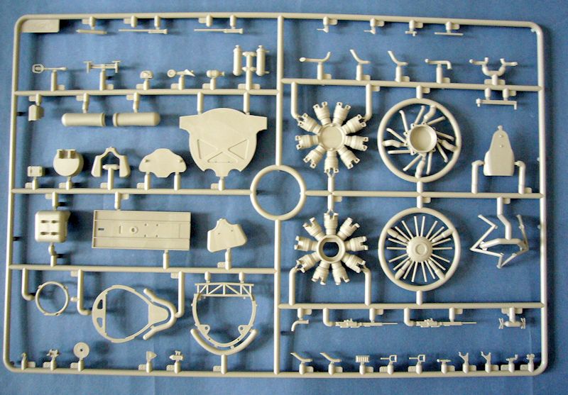 Die Gussteile sind sehr sauber ausgeführt und besonders positiv hervorzuheben ist die ausgezeichnete Darstellung der Rippenstruktur und Stoffbespannung. Auch die Darstellung des Motors ist ausgesprochen gut gelungen, wobei man mit etwas Aufwand noch mehr herausholen könnte, was aber nicht wirklich lohnt, da dieser fast komplette nach dem Zusammenbau des Flugzeuges hinter einer Abdeckung verschwindet.