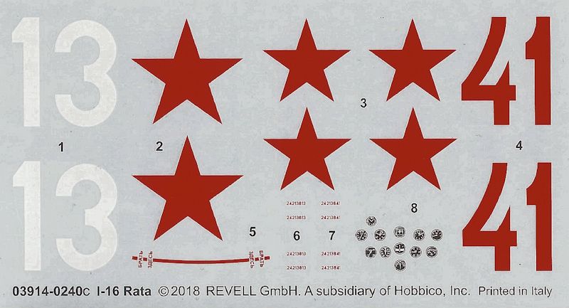 Bausatz: Der Bausatz der I-16 ist keine Wiederauflage des bekannten ICM Modells, sondern des aus neuen Formen 2017 stammende. In der typischen Revellfaltschachtel findet man drei große Spritzgussrahmen in hellgrauem Plastik sowie einen kleinen Gussast mit transparenten Teilen. Die Aufteilung ist wie folgt: