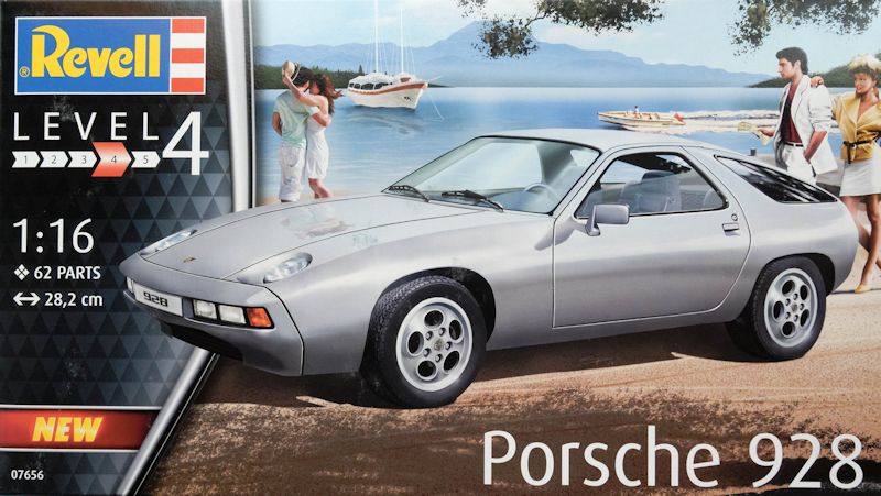 Vorbild: Als dieser Sportwagen vorgestellt wurde sorgte dieses Design für große Diskussionen unter den Porsche Fans. Erstmalig verbaute Porsche hier einen Achtzylinder Motor vorne und das Getriebe am Heck. Zur Reduzierung des Gewichtes bestand die Karosserie aus Aluminium. Um die Front so flach wie möglich zu halten wurden hier erstmalig Klappscheinwerfer verbaut. Mit diesem Wagen gelang Porsche einen reinrassigen Sportwagen mit einer hoch luxuriösen Ausstattung zu verbinden. Im Laufe der Jahre wurden immer wieder leichte Veränderungen vorgenommen. So wurde der 240 PS Motor auf 300 PS gesteigert und der Name erweitert auf 928 S. Nach einer weiteren Steigerung auf 310 PS lautete die Bezeichnung 928 S2. Es folgten dann noch weitere Steigerungen: 928 S4 = 320 PS, 928 S4 Clubsport, 928 GT. Letztendlich folgte 1990 der 928 GTS mit 5,4 Liter Hubraum und 350 PS der bis zum Produktionsende im 1995 gebaut wurde. Dieser Wagen gehört bis Heute zu einem Klassiker der Automobilgeschichte.