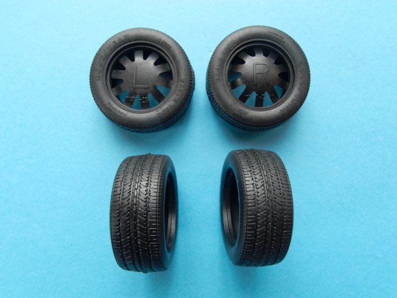 Die Gummireifen sind mit allen Beschriftungen und Laufrichtungen detailliert, was sehr gut gelungen ist. Als Besonderheit sind diese sogar mit L und R markiert, um sie seitenrichtig anbauen zu können.