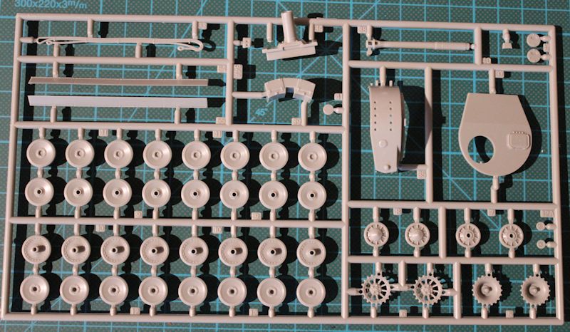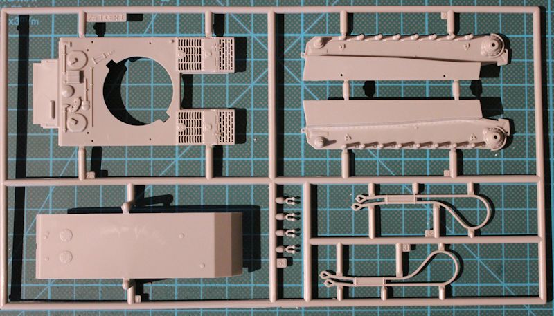Leider sind die Werkzeuge an der Wanne angegossen. Die Schleppseile wiederum nicht was ich gut finde. Die Ketten liegen als Segment und Einzelglieder bei. Was auch gut ist, das Kanonenrohr besteht aus einem Stück.