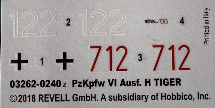 Bemalung: Mit den wenigen - bis auf die Balkenkreuze - sauber gedruckten Abziehbildern können zwei Varianten gebaut werden, beide von der PzAbt.501, Tunesien März 1943.