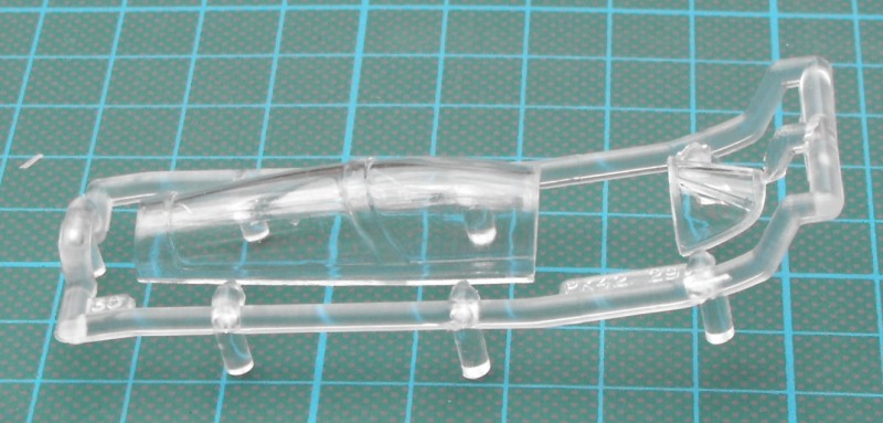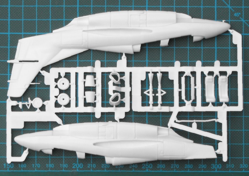 Die Spritzgussteile besitzen die damals für Matchbox typischen breiten Gravuren. Das Cockpit ist nur mäßig detailliert. Es gibt zwei Sitze und das war es. Die Kanzel besteht aus zwei Teilen und kann theoretisch in geöffneter Position montiert werden. Nur für gibt es leider keine Detailset. Immerhin hat Falcon eine Kanzel im Angebot. Selbst den LS-1-Schleudersitz habe ich nicht gefunden. Ansonsten dürfte der Bau keine Probleme bereiten wenn man das Buggewicht nicht vergisst.