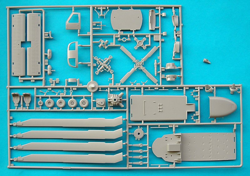 Bausatz: Revell hat hier den bekannten Italeri Bausatz wieder aufgelegt. Insgesamt recht gut detailliert, fallen die italeritypischen etwas Breiteren Gravuren auf. Diese sind jedoch randscharf und werden nach einer Schicht Farbe sicher einen guten Eindruck hinterlassn. Die Ausstattung des Innenraums ist für einen Plastikbausatz ganz ordentlich.
