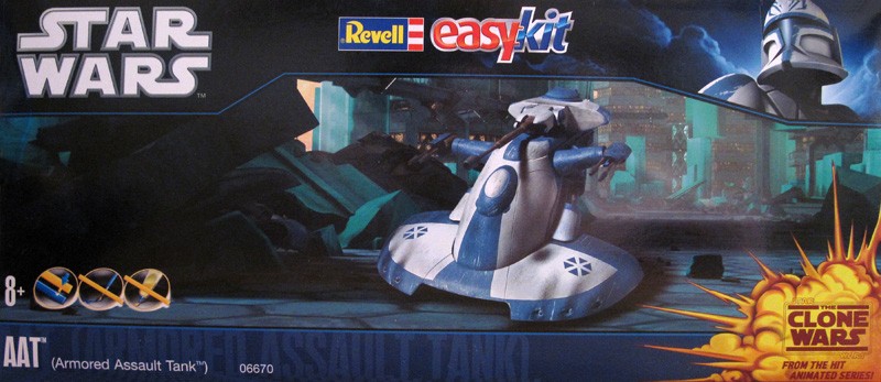 REVELL setzt seine Reihe von Modellen der Clone-Kriege mit einem alten Bekannten fort. Allerdings unterscheidet sich dieser Tank aus der Animations-Serie im Aussehen etwas vom AAT des Kinofilms. Besonders weiß hier im neuen Easy-Kit das Cockpit zu gefallen. Die Luke des Turmes lässt sich öffnen und gibt den Blick frei auf einen detaillierten Kampfraum mit sitzendem Droid-Piloten.