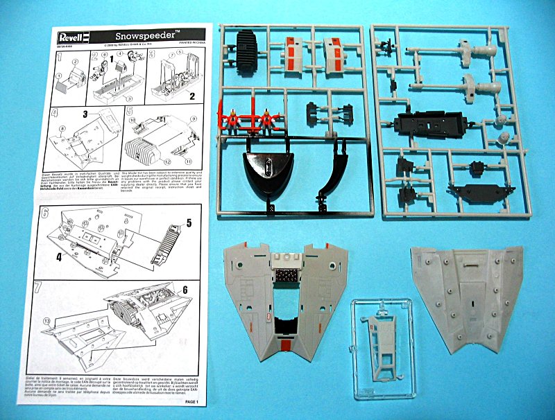 Das Cokpit ist detailliert und mit zwei Piloten besetzt, welche auch schon vorbemalt sind. Den Modellbauer erwarten 23 Einzelteile inclusive eine Klarsichtkanzel für einen Snowspeeder, der letztendlich 10 cm lang und 9 cm breit ist.