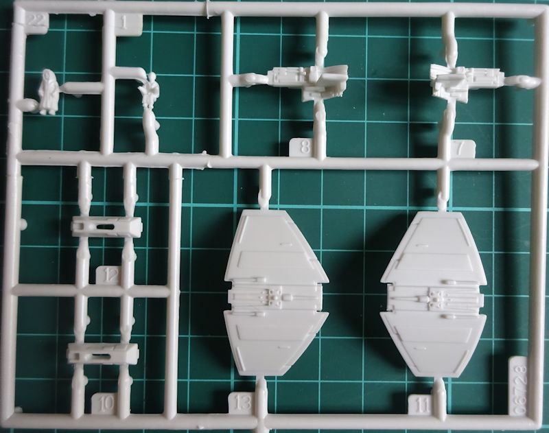 Der Jedi Starfighter besteht aus vier hellgrauen und einem Klarsichtgussast mit insgesamt 22 Teilen.