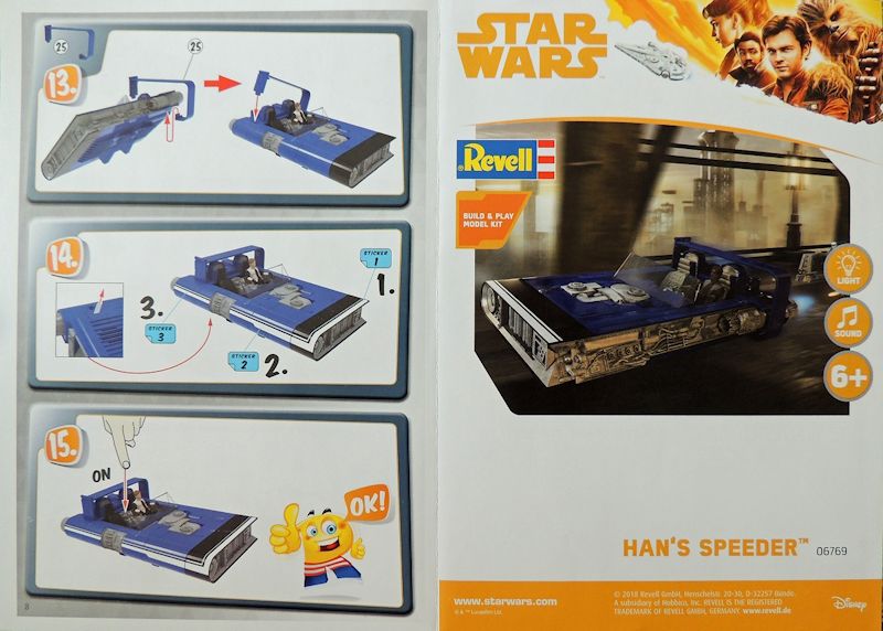 Vorbild: Zum neuen Kinofilm "Solo. A Star Wars Story"; hat Revell insgesamt drei Bausätze auf den Markt gebracht. Dies hier ist der dritte davon und zeigt uns Han Solos Speeder aus der Verfolgungsjagd-Szene auf Corellia vom Anfang des Filmes.