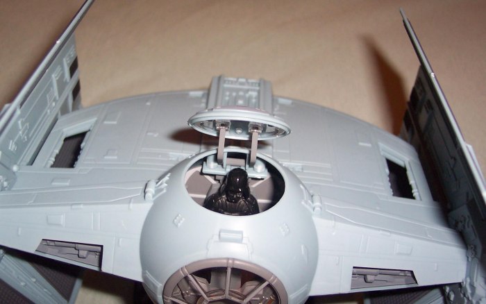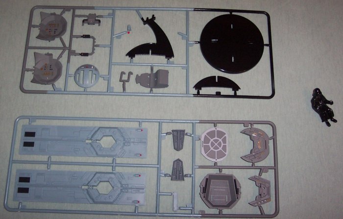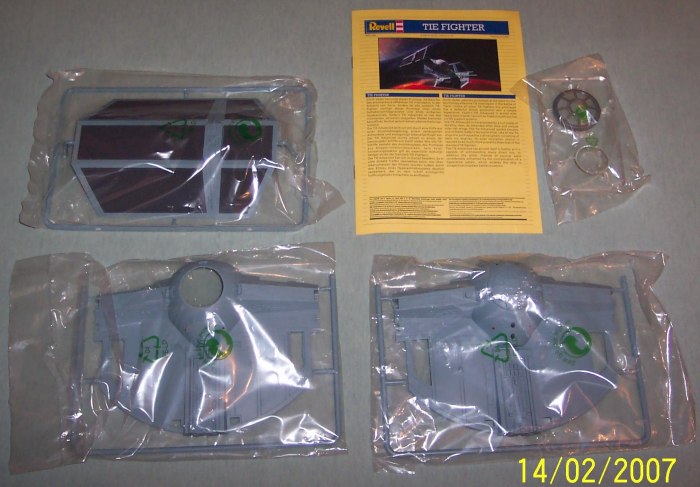 Im gewohnt ansprechend gestalteten Karton befinden sich insgesamt 7 vorlackierte Spritzlinge und eine gut detaillierte Pilotenfigur, die Darth Vader darstellt. Die Figur ist sogar, sich an der Originalfigur orientierend, an ausgewählten Rüstungsteilen glänzend lackiert. Die Gussqualität ist wie immer hervorragend und die Lackierung ist sicherlich ausreichend, wenn auch nicht ganz so ausgefeilt wie beispielsweise beim Millenium Falcon. |