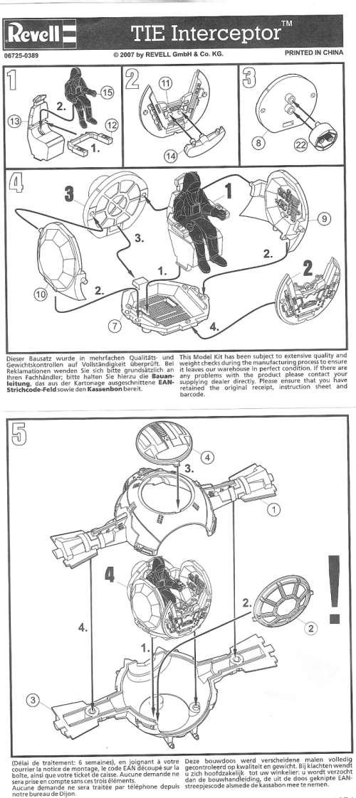 Revell hat diesen Jäger als Easy-Kit und in einer neuen Verpackung rausgebracht. Diese besteht aus einem weißen Karton, welcher in einer Tüte steckt. Inhalt sind 3 Spritzlinge, einer mit Klarsichtteilen, und 2 Faltflügeln, dazu die Bauanleitung. Diese führt in 10 leichtverständlichen Schritten zum fertigen Modell.