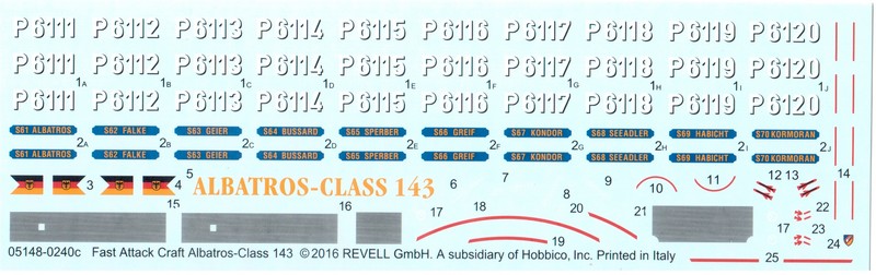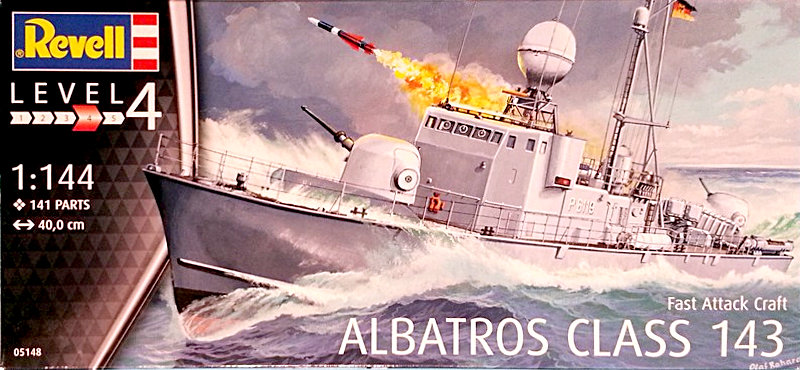 Modell: Auf den bekannten Internetauktionshaus sind die Bausätze dieser Schnellbootklasse sowie ihrer Halbschwester der Gepard-Klasse 143A mittlerweile sehr gesucht. Wenn man der Timeline auf Scalemates glauben kann, wurde der Bausatz der Albatros-Klasse 143 seit dem Erscheinen als Neuheit im Jahre 1996 nicht mehr aufgelegt. Der Kit der 143A Boote wurde zumindest im Jahre 2009 als Wiederauflage in die Regale gebracht. Zu diesem Bausatz hat Till Huber hier auf der Seite einen sehr guten und ausführlichen First Look geschrieben. Da ich im Bereich der modernen Bundesmarine nicht ganz so versiert bin, empfehle ich diesen zu lesen.