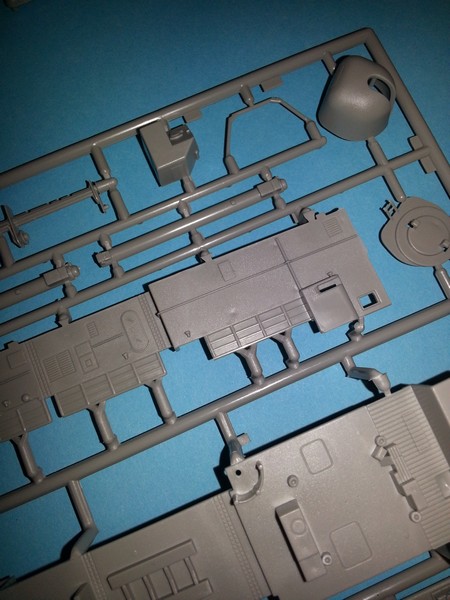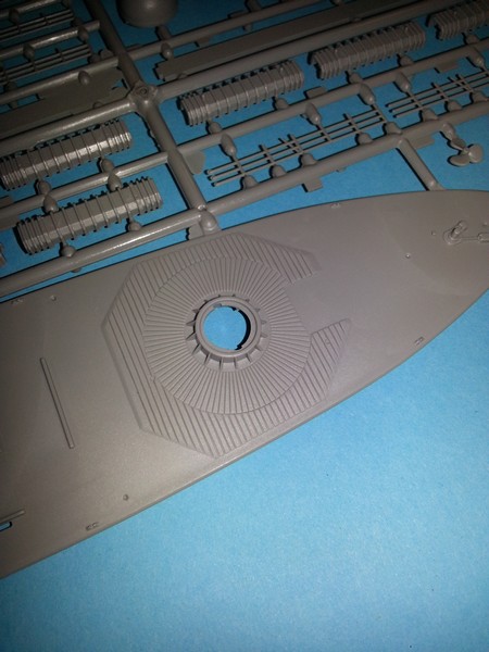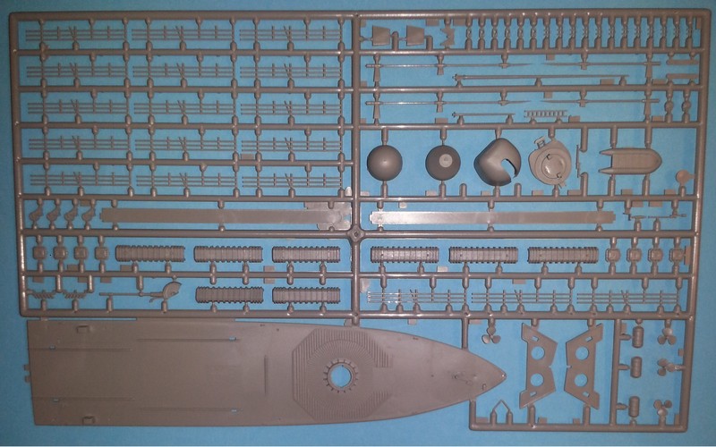 Der Bausatz besteht aus zwei Spritzlingen und den beiden Rumpfhälften. Insgesamt befinden sich darauf 141 Teile. Das Ganze wird von Revell in Level 4 eingeordnet, welches man neben den anderen Angaben auf dem Schüttkarton im neuen Design hervorgehoben findet. Bei Wiederauflagen stellt sich an sich ja immer die Frage, ob die Form und die Abspritzung Alterungserscheinungen zeigen. Dieses kann man hier absolut verneinen! Ich denke auch, dass sich der Bausatz auch heute nach 20 Jahre nicht verstecken muss. Wahrscheinlich würde das eine oder andere noch feiner gehen, aber man hat es ja auch mit einem Schiffsmodell in 1/144 zu tun. Ich könnte mir vorstellen, dass vielleicht der eine oder andere Zubehörhersteller noch was auf den Markt bringt, damit der geneigte Modellbauer die Reling und Leitern ersetzen kann. In 90% der Fälle wird es aber auch so gehen.