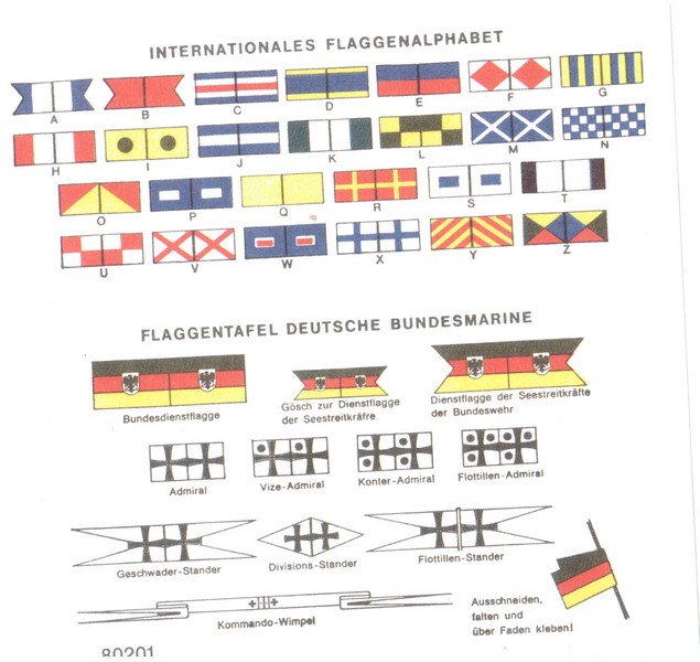Dies soll aber auch schon von meiner Seite an Kritik gewesen sein und ich muss gestehen, dass ich schon Lust habe mal was Maritimes im großen Maßstab(zumindest im Schiffsmodellbau) zu bauen. Zu Ausstattung des Bausatzes gehört auch ein Streifen durchsichtigen Plastiks zur Darstellung der Brückenfenster. Der beiliegende Abziehbilderbogen erlaubt den Bau aller zehn Boote mittels der Namenstafeln und Rumpfnummern. Des Weiteren findet man auch noch einige Warnstreifen und Markierungen. Die Gösch kann man ebenfalls dem Decalbogen entnehmen oder dem kleinen Blatt aus Papier, wo man auch noch Signalflaggen findet.