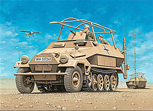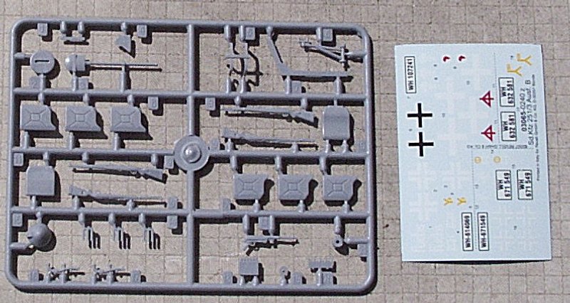 Das vorliegende Modell stellt eine Funkvariante der Ausführung B des mittleren Schützenpanzerwagen 251 dar. Positiv sind mir die Darstellung des Motors und des der Funkgeräte samt Zubehör aufgefallen. Es lassen sich aus diesem Bausatz eine Vielzahl von Varianten des Fahrzeuges bauen. Als Beispiel sei hier der optionale Funkmast genannt, der im ausgefahrenen und im eingefahren Zustand im Bausatz beiliegt.
