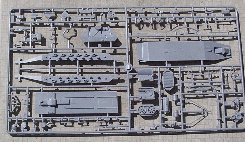 Die Kette für das Laufwerk besteht aus Einzelgliedern. Ein paar leicht zu Ändernde Fehler hat der Bausatz. Der Heckpanzer entspricht der Ausführung C und nicht der Ausführung B. Für die B-Ausführung muss das Bauteil E16 (Hinterer oberer Panzeraufbau) abgeändert werden. Die B-Ausführung hatte eine durchgehende kleine Panzerplatte ohne Winkel über den Hecktüren.