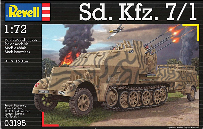 Gut gelungen sind auch der Riffelblechboden und die Lochblechseitenwände des Sd.Kfz 7/1. Die Panzerung der Kabine und des Kühlers ist mit feinen Nieten gut dargestellt. Die Ketten bestehen aus einem Teil Plaste und werden um das Laufwerk gebogen.