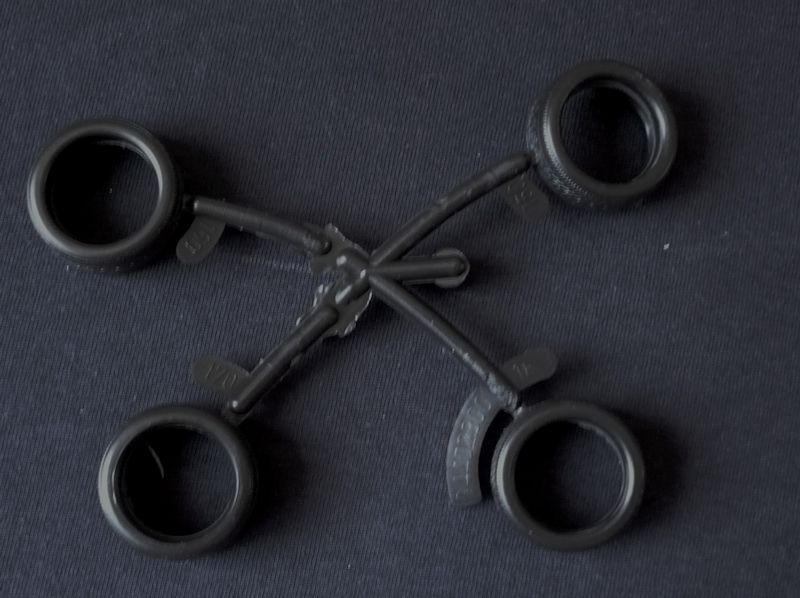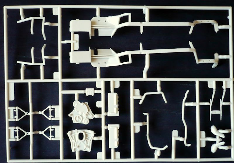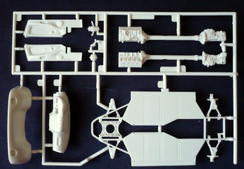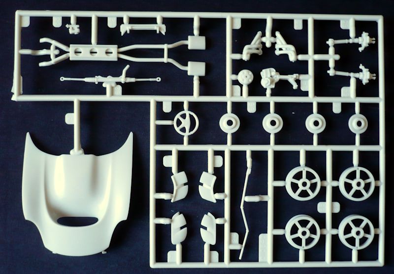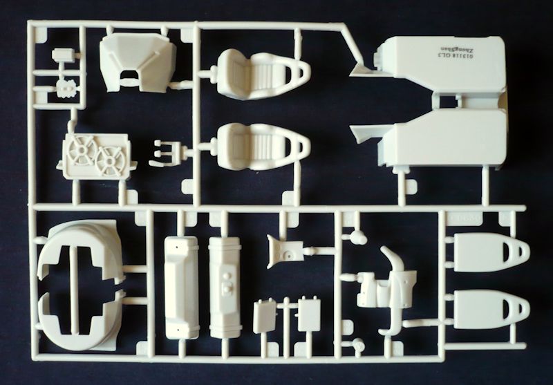 Der besteht aus gesamt 116 Bauteilen, verteilt auf sieben Spritzlinge, der Karosserie als Einzelteil, vier Vinylreifen und einem Abziehbilderbogen.
