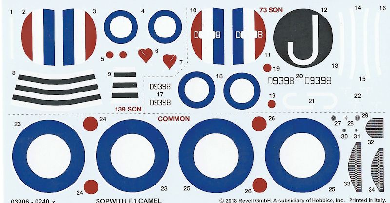 Bemalung: Es liegt ein neugestalteter umfangreicher Abziehbilderbogen mit Markierungen für vier unterschiedliche Flugzeuge bei: