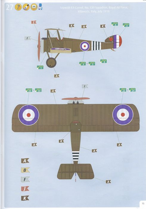 Bauplan: Als Bauplan erhält man ein farbiges 20 seitiges Heft in DIN A4, das in 26 Stufen durch den Bauprozess führt. Die Abbildungen sind einfach und verständlich ausgeführt, wobei man in jedem einzelnen Abschnitt Informationen zur Bemalung der einzelnen Teile finden kann. In den Abschnitten 25 und 26 sind Angaben zur Bespannung enthalten, die einerseits die große Herausforderung dieser Flugzeugtypen für den Modellbauer darstellt, aber auch das Tüpfelchen auf dem i darstellt.