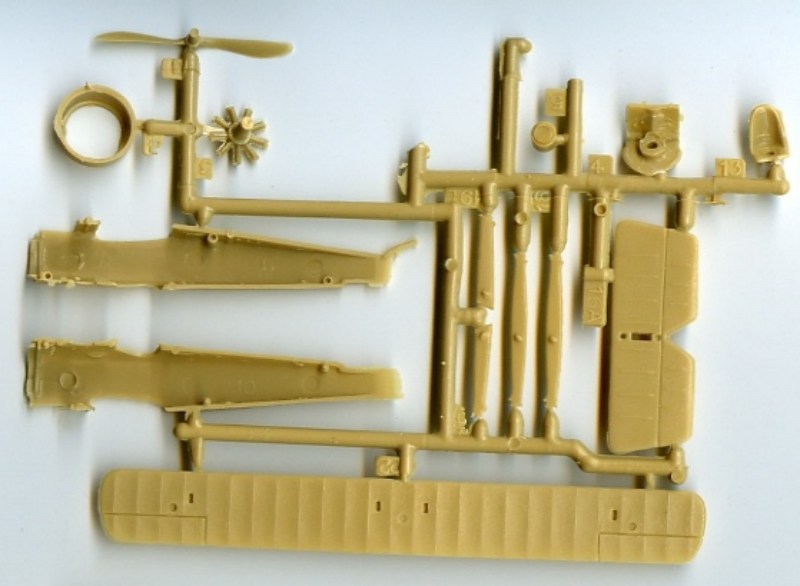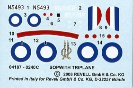 Entsprechend der Entstehungszeit werden für den Führerraum eine Pilotenfigur, die an einen Sitz und Steuerknüppel angegossen mitgeliefert. Der übersichtliche Bauplan enthält auch eine Skizze für die Verspannung. Mit guten Bemalungshinweisen und interessanten Decals wertet Revell die Nachauflage deutlich auf. Sie sind versatzfrei auf hellblauem Trägerfilm gedruckt.