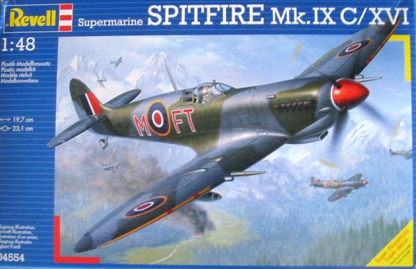 Vorbild: Die Spitfire ist eines der bekanntesten und berühmtesten Jagdflugzeug des 2. Weltkriegs, insgesamt wurden mehr als 22.500 Exemplare gebaut. Durch die zahlreiche Verbesserungen und Aufrüstungen wurde sie permanent leistungsstärker. Im Laufe des Jahres 1941 wurden von der Deutschen Luftwaffe die Focke Wulf Fw190A in Dienst gestellt, die sich den bisher vorhandenen Spitfire-Versionen überlegen erwies. Eine schnelle Problemlösung war daher die Verbesserung der Spitfire-Flugzeugzelle der Version Mk. V durch den Einbau von leistungsstärkeren Motoren der Merlin 61-Serie, die einen Vierblatt-Propeller antrieben. Die frühen Maschinen der Variante Mk. IX waren umgebaute Mk. V mit verschiedenen Tragflächentypen. Die ersten Flugzeuge des Typs Spitfire IX wurden bei der No. 64 Squadron der RAF im Juli 1942 in Dienst gestellt und ab diesem Zeitpunkt erwiesen sie sich als wirkungsvolle Waffe auf den Kriegsschauplätzen sowohl Europas als auch Asiens. Die Spitfire wurde bis Kriegsende produziert und insgesamt 5.739 Spitfire Mk. IX hergestellt, die bei 79 Einsatzgeschwader der RAF, bei 23 Staffeln alliierter Kräfte unter Leitung des RAF Fighter Commands, sowie bei 23 kanadischen, drei australischen und neun neuseeländischen Geschwadern dienten. (Quelle: Revell)