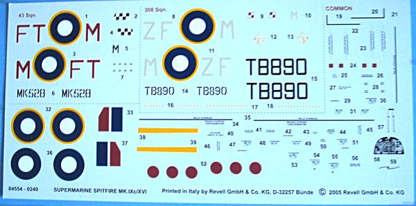 Bei Wiederauflagen gibt sich Revell oft große Mühe, hervorragende Abziehbilder beizulegen. Auch diesmal ist die Qualität der Abziehbilder sehr gut. Leider liegen nur 2 Nachkriegsbemalungen bei.