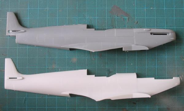 Wo liegt das Hauptproblem? Der Rumpf ist in mehrfacher Hinsicht zu klein geraten. An der Länge fehlen etwa ca. 5-6 mm, die sich vor dem Cockpit und vor dem Leitwerk einfügen ließen. hinzu kommt noch, dass dem Rumpf ab dem Cockpit auf ganzer Länge jeweils ca. 1 mm an der Höhe fehlen. Wer es ganz genau wissen will, lese bitte den Bericht von Bruce Archer bei Hyperscale: Supermarine Spitfire IXc Kits Compared, der auch mit den Maßen einer Originalmaschine vergleicht! (Übrigens haben alle Spitfire IX ihre kleinen Probleme, aber Hasegawa liegt am weitesten daneben!)
