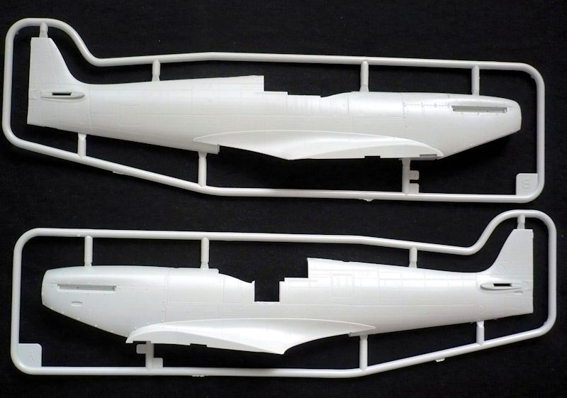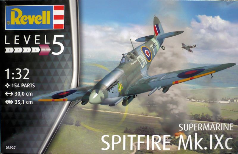 Bausatz: Diese Spitfire ist bis auf zwei Spritzlinge ein komplett neues Modell bestehend aus 154 Teilen. Übernommen wurden von der Revell-Spitfire Mk.IIa Teile für das Cockpit und die Steuerflächen. Die Oberflächengravuren und Details treten scharf und sauber hervor. Alle Nietenreihen, Blechstöße und Klappen befinden sich offensichtlich am rechten Platz. Das Cockpit ist gut detailliert. Beim vorliegenden Modell fehlt jegliche Verkabelung und der mehrteilige Sitz verfügt über keine Sitzgurte. Anders als bei den anderen 32er Neuerscheinungen von Revell liegen leider auch keine Decals dafür bei.