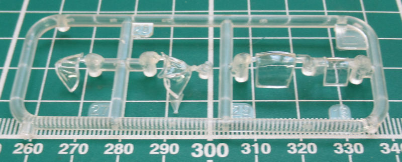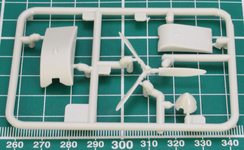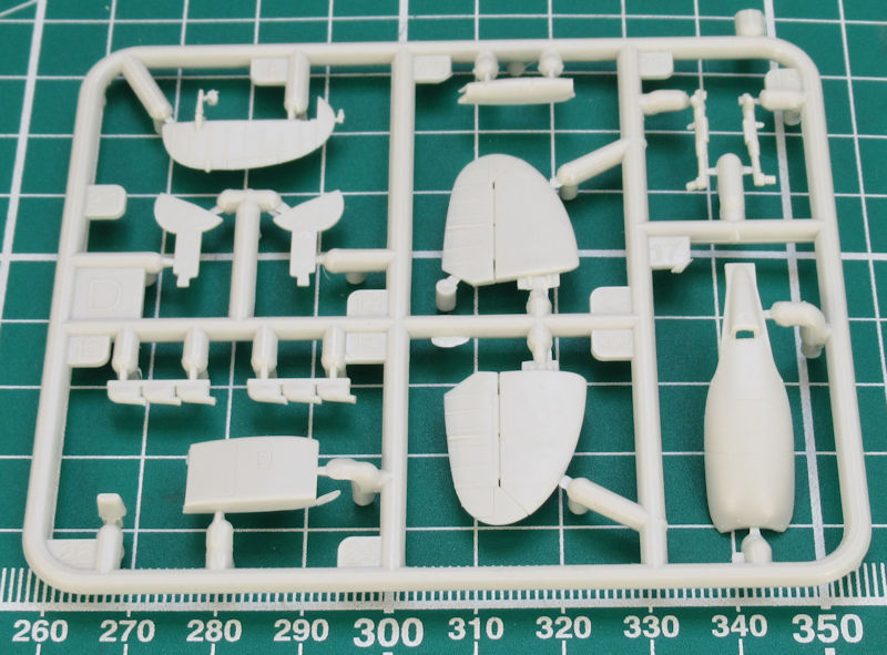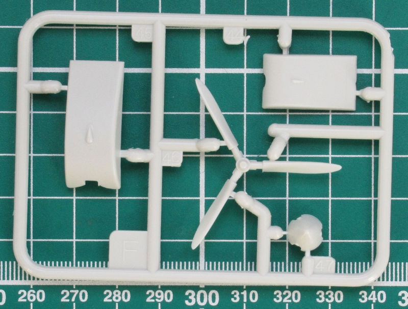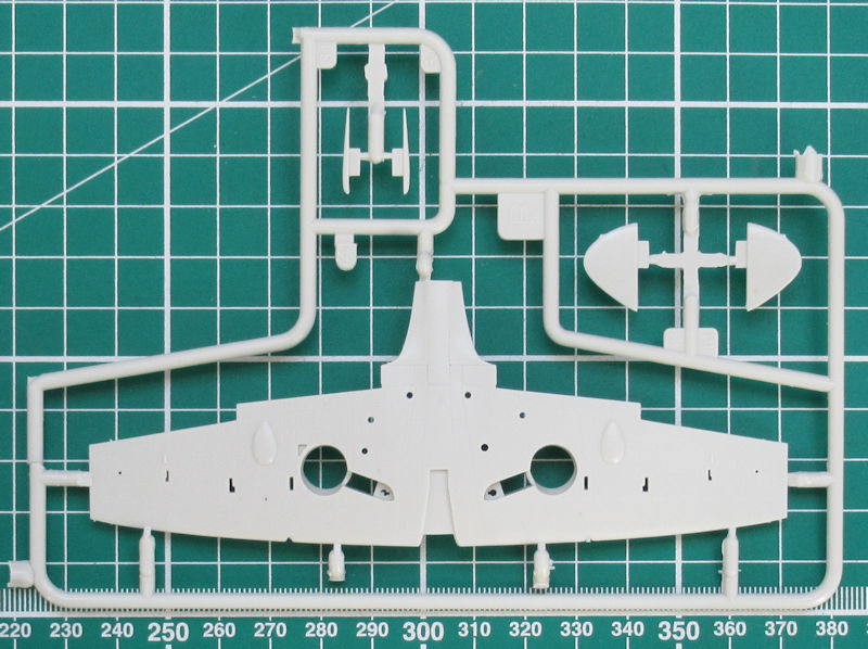 Die Tragfläche ist samt Fahrwerksschächte sehr gut gestaltet. Alle Auswerferöffnungen sind an passender Stelle vorhanden. Revell hat bei den Rudern für scharfe Hinterkanten gesorgt. Das ist sehr gut! Bei den Hauptfahrwerksrädern kann man zwischen den Ausführungen mit vier oder fünf Speichen wählen. Bei der Frontverglasung gibt es ein Alternativteil. Leider sagt die Bauanleitung nichts darüber aus welches verbaut werden soll.